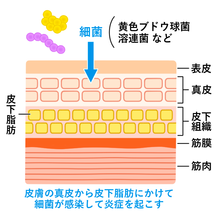 むくみがある箇所の皮膚は非常にデリケートで、細菌感染により熱や赤みが生じる蜂窩織炎もリスクの1つです。