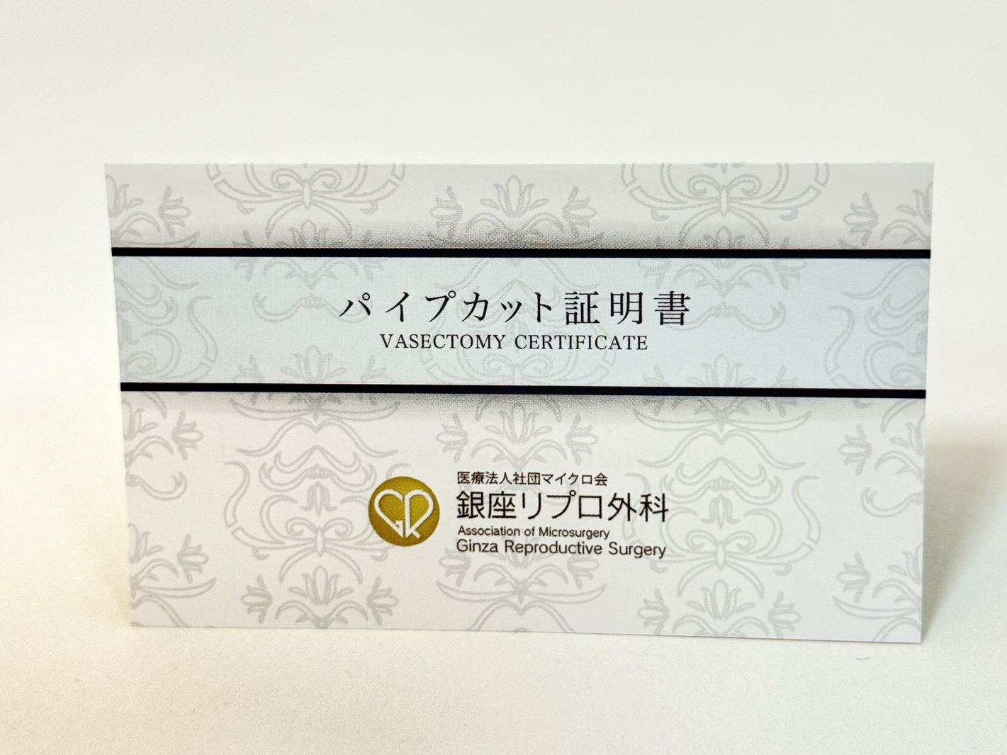 パイプカットを受けたかどうかは、外見から判断できません。新しく出会った女性に手術を受けたと伝えても、信じてもらえないことが多いでしょう。当院では、パートナーからリクエストされたときに役立つパイプカット証明書を発行しています。