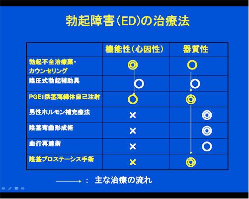 保険適応に向けて現在、日本性機能学会ICI認可推進委員会が中心となり各施設での自主研究を進め、厚生労働省に働きかけています。最近、労災認定の検査項目として正式に認められましたが、薬剤の勃起障害への適応拡大は認められていません。