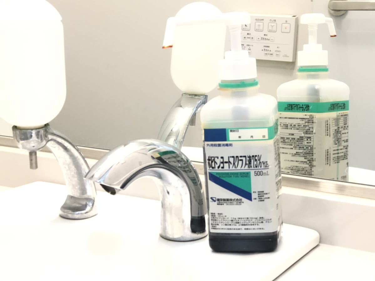 待合、診察室、お使いになられたタブレット等は、患者様がご移動されるごとにアルコールでの消毒を徹底しております。消毒漏れなどがございませんよう、患者様にお使いいただくお部屋を制限させていただいております。