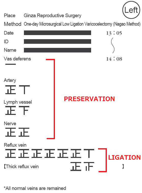 The microsurgical low ligation varicocelectomy ・Nagao method is different from normal surgery and require very advanced techniques. It is an operation called Supermicro Surgery, which can be performed only by doctors who have skills in the field of ultramicrosurgery and have further training. Currently, there are only a few doctors who can perform this operation in our clinic. Due to the extremely advanced procedure, the number of doctors who can perform this operation is limited, so we perform this operation at your own expense.