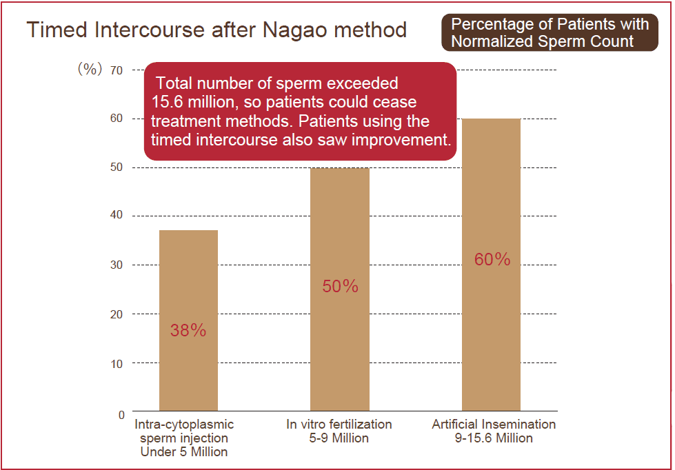 Since the Nagao method leaves everything necessary, there are almost no functional deterioration or complications compared to general surgery, and the improvement of semen findings is as high as 87% (* 1).