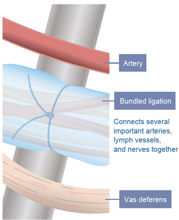 Surgery that is commonly performed is surgery that leaves one or two vas deferens and arteries then connects all others together. Among the tied things are several important arteries, lymph vessels and nerves.