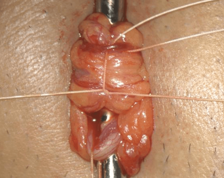 The skin is sewn from the back side of the skin with a meltable thread, so the thread will not be removed.