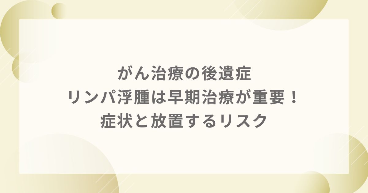 「むくみがなかなか引かない」「腕や脚が重だるい」といった、リンパ浮腫の症状を自…