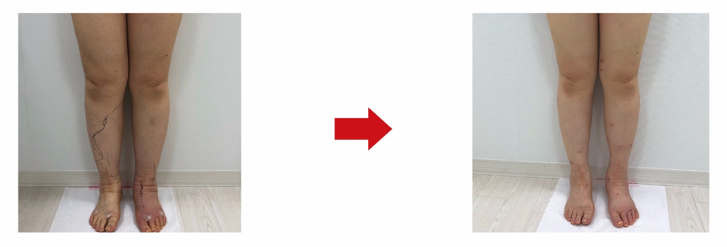 弾性着衣で患肢を圧迫した状態で筋肉を使う運動をすることで、リンパ管の動きが活発になり、リンパ液の流れが良くなります。